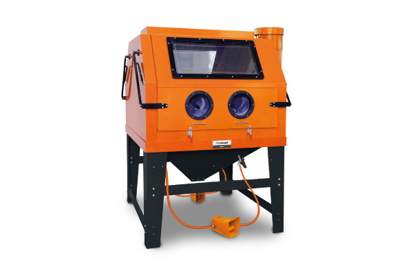 Samostatne stojaci box s aktívnym odsávaním na pieskovanie stredne veľkých predmetov.
